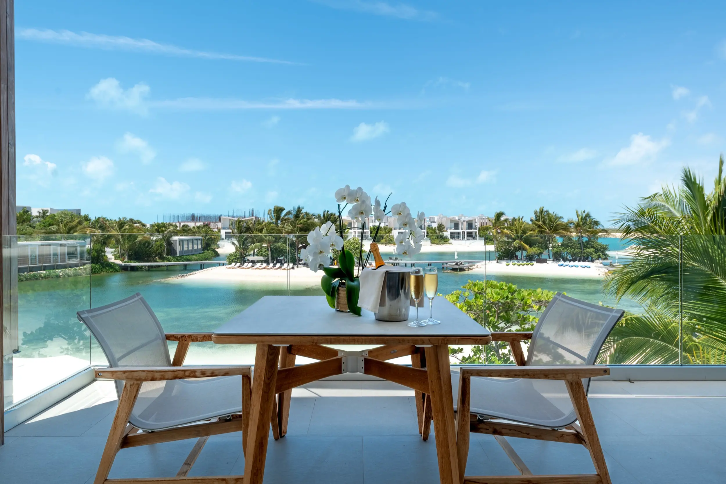 The three-bedroom Lagoon Villa spans two stories and features stunning views, a private pool, two king bedrooms, and one with two twin beds—all with private ensuites including soaking tubs and/or showers.